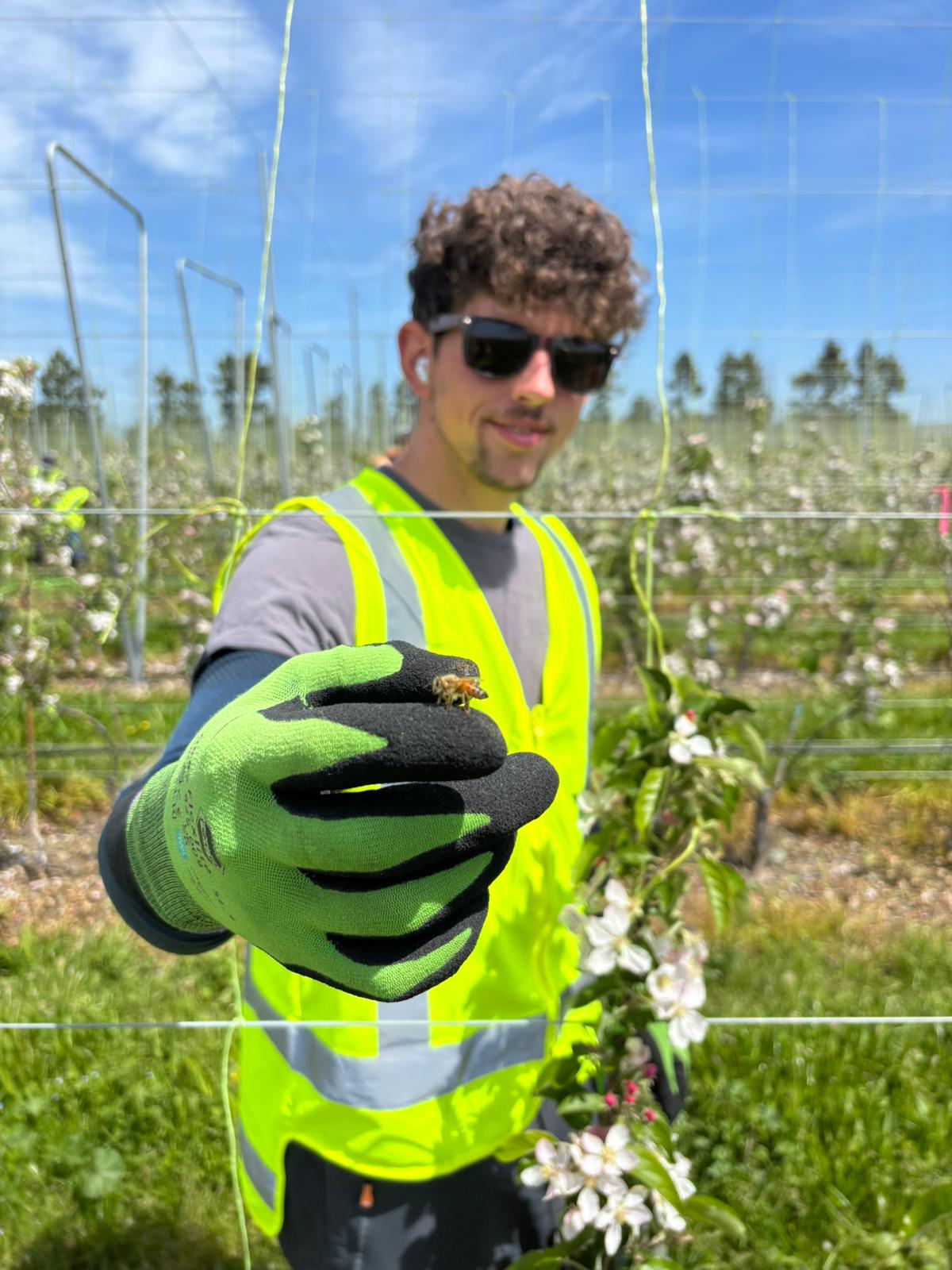 Als letztes sind wir zu größeren Bäumen gewechselt und haben diese ausgedünnt, indem wir von diesen die kleinen Äpfel entfernt haben. (Von 30 Äpfeln auf einem Ast haben wir 25 von diesen entfernt, damit diese größer wachsen können.)