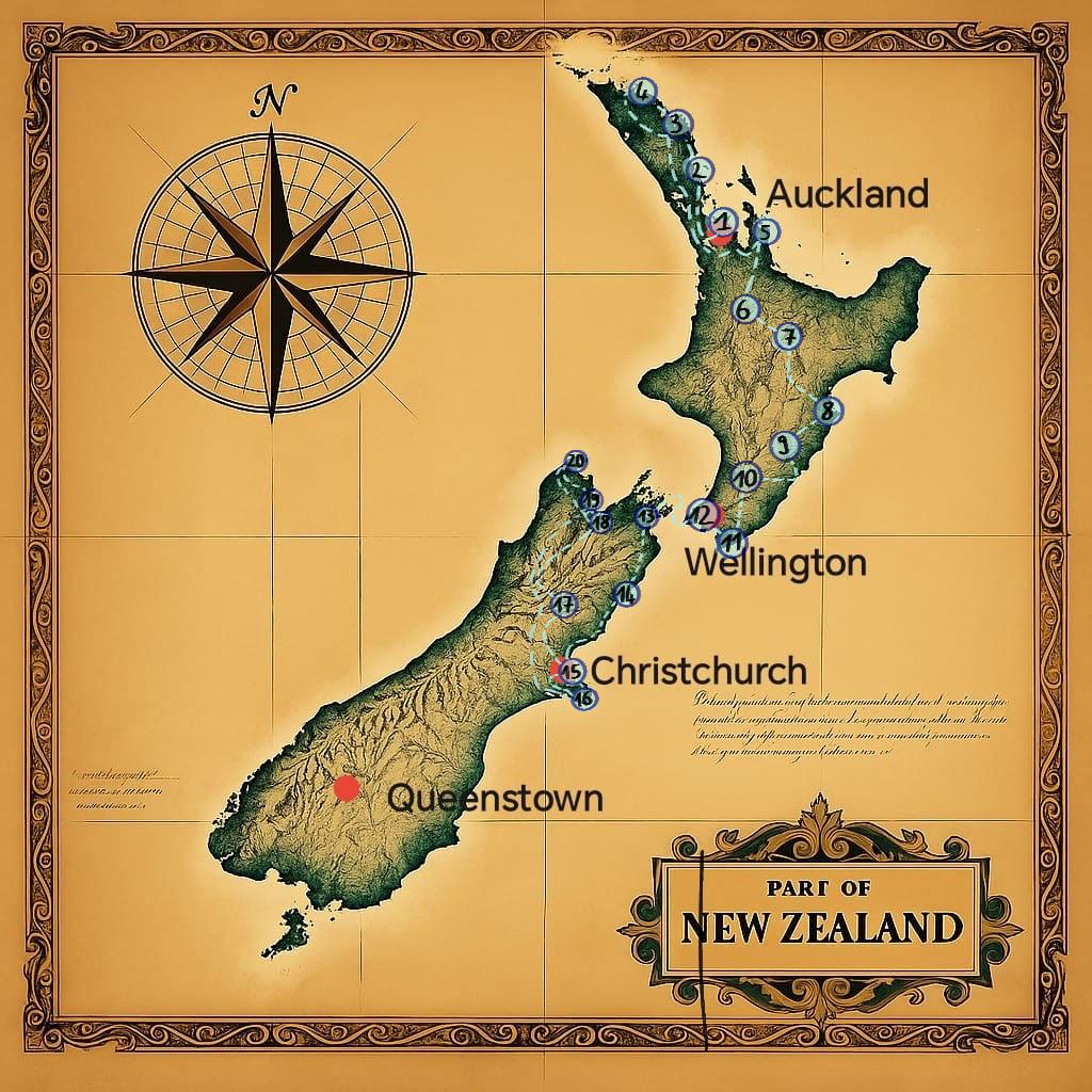 In dieser Karte werden wir nach und nach einzeichnen, wo wir überall waren und wie unsere Reise quer durch Neuseeland abgelaufen ist.