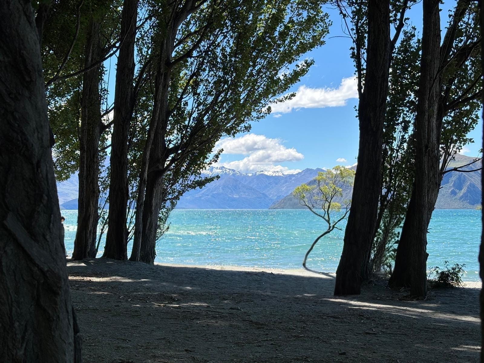 Heute sind wir wieder weiter Richtung Süden gefahren. Natürlich sind wir aber auch wieder bei diesem wunderschönem Blick aufgewacht. Dann Frühstück und verabschieden. Weiter ging es über ein riesiges Flussbett und ein paar Flüsse. Beeindruckend war wieder der Weg nach Wanaka und auch der Ort an sich, denn umgeben von Bergen ist immer schön :P . Da sind wir zu dem einsamen Baum im Wasser gegangen, was aber nicht die einzige Attraktion war, denn der See und die Aussicht auf die Schneebedeckten Berge war wieder einmal so unglaublich schön.