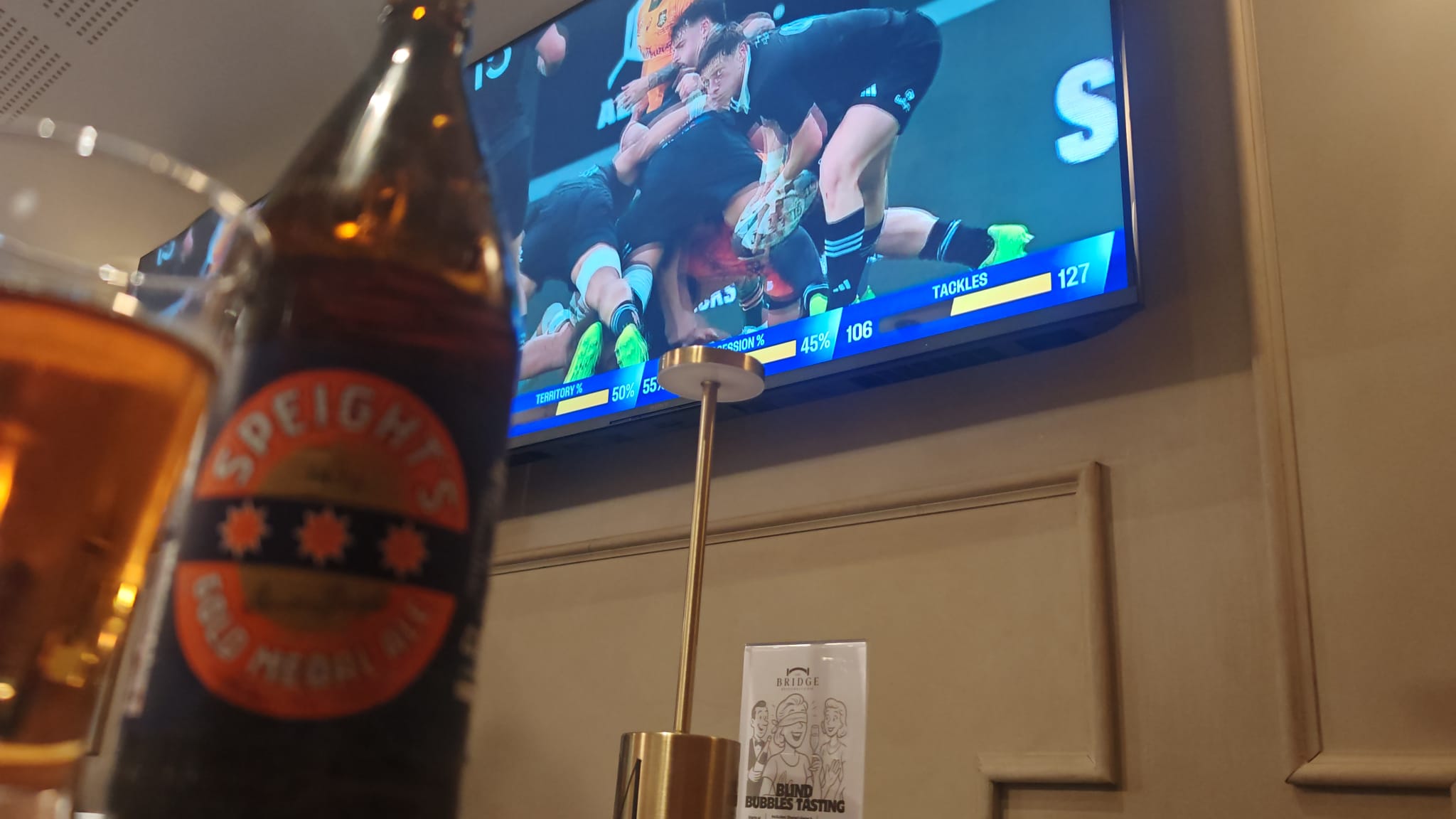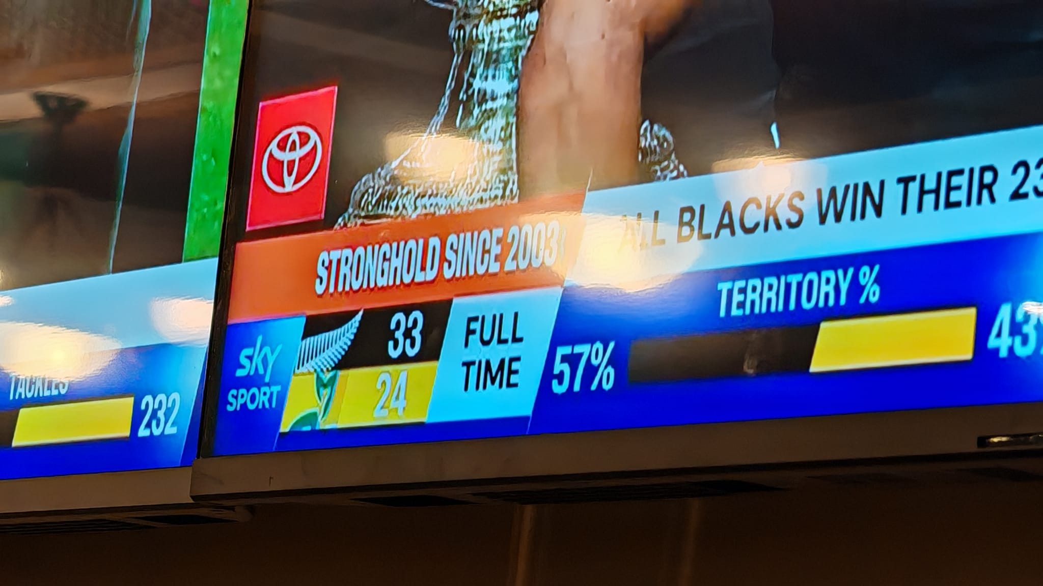 Heute sind wir noch einmal in Christchurch herumgefahren. Wir waren auf einem Ausblickpunkt, ein bisschen Shoppen und sind am Abend in einen Pub gegangen, wo die Rugby Championship live übertragen wurde. Die haben wir uns angeschaut und mitgefiebert, natürlich haben die "All Blacks", die Neuseeländische Nationalmannschaft, gewonnen. 33 zu 24.
